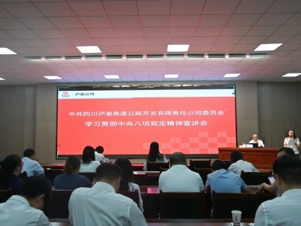為深入學習習近平總書記關于加強黨的作風建設重要論述精神,貫徹落實中央八項規定及其實施細則精神,教育引導公司黨員干部職工凝心聚力、干事創業,6月25日,瀘渝公司黨委在本部監控大樓四樓會議室組織召開學習貫徹中央八項規定精神宣講會。