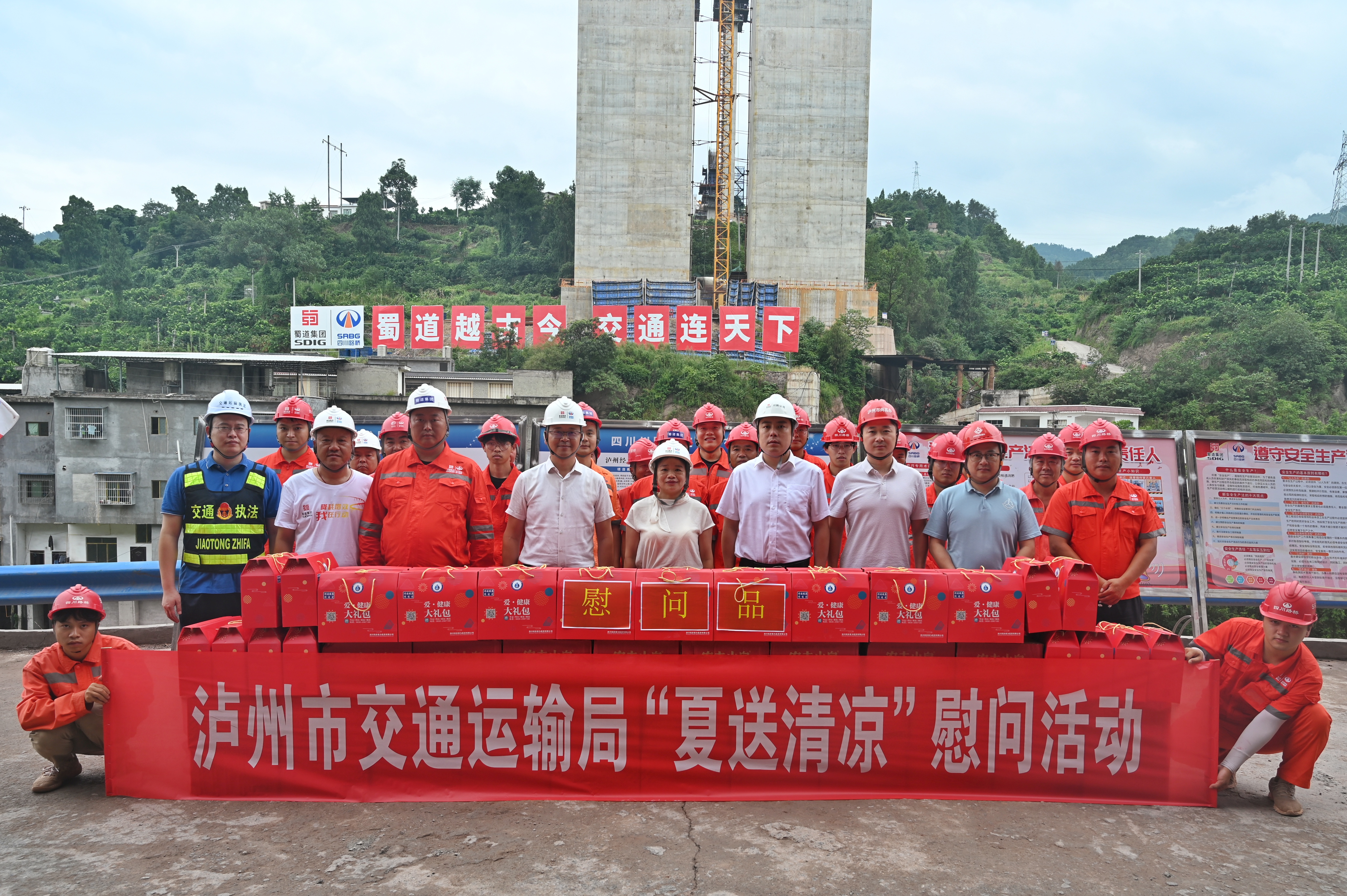 建項目古藺河特大橋施工現場,給一線工作人員帶去防暑降溫大禮包,并與技術人員進行了親切交流;慰問結束后,朱曉群一行赴月亮坡隧道和水落河特大橋現場進行檢查,對項目安全生產工作予以肯定,對高溫天氣依然堅守一線的員工表示感謝,也進一步強調相關工作部署:一是近期瀘州市,特別是古藺縣近日氣溫位居全國高溫榜首,項目部要做好員工的防暑降溫工作,以人為本,科學安排,合理調整工作時間,室外作業時應盡量避開酷熱時段;二是安全就是效益,要督促高空作業人員做好安全防護措施,嚴格落實瓦斯隧道超限預報工作;三是要密切關注天氣信息,熟悉高溫、汛期等應急處置措施,做好駐地風險及地災評估,確保駐地安全。
