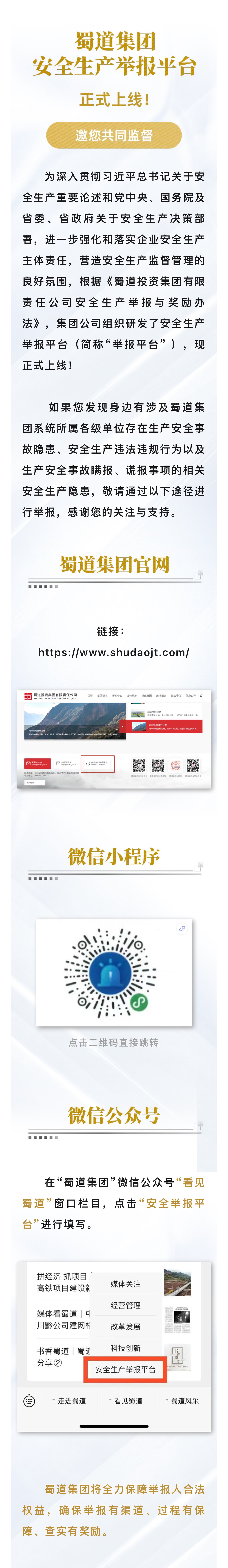蜀道集團安全生產舉報平臺正式上線!邀您共同監督