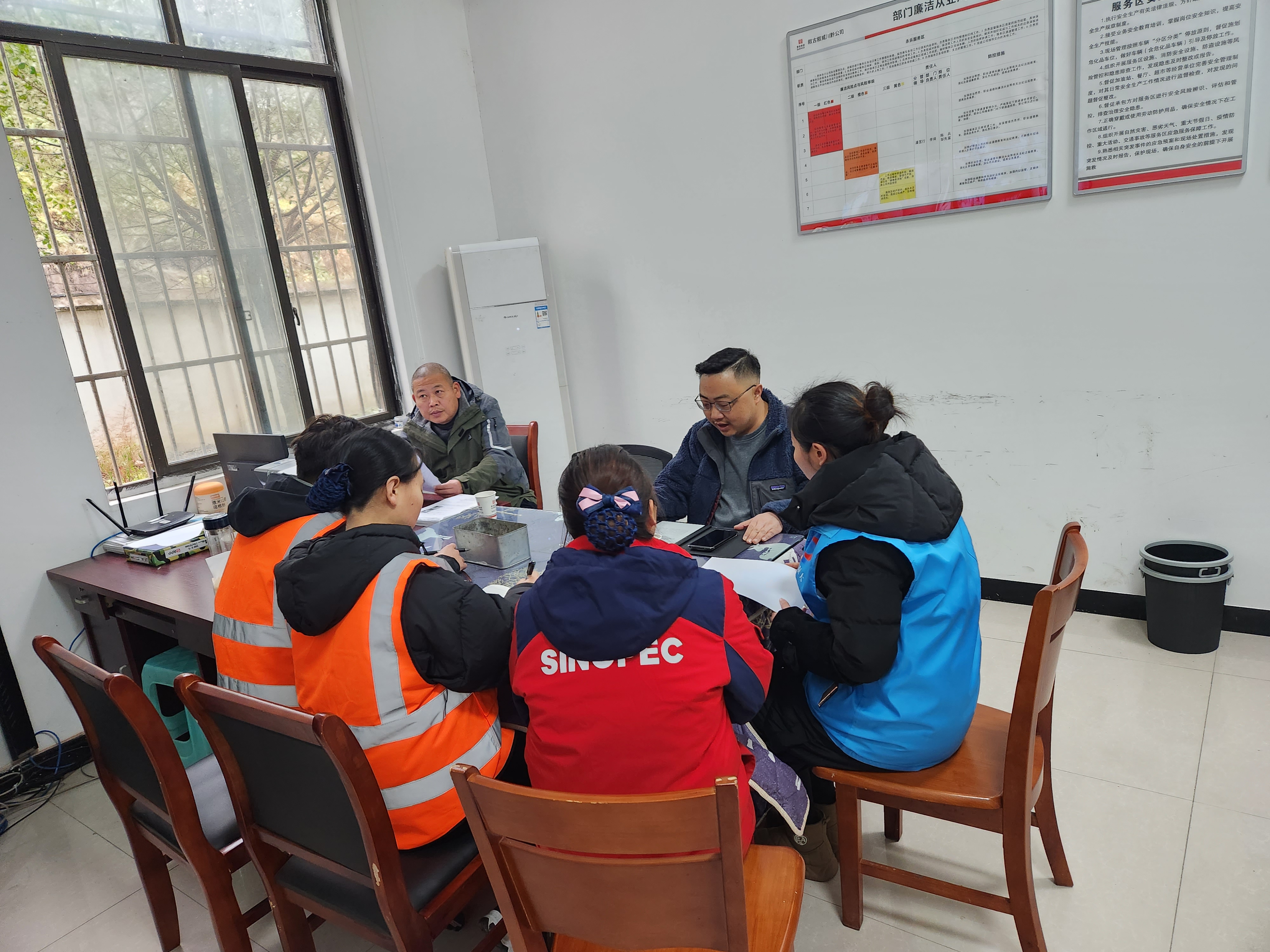 現(xiàn)場檢查結(jié)束后,資產(chǎn)經(jīng)營部組織永樂服務區(qū)加油站負責人、商家負責人和現(xiàn)場管理人員召開2024年春節(jié)前安全生產(chǎn)工作部署會。